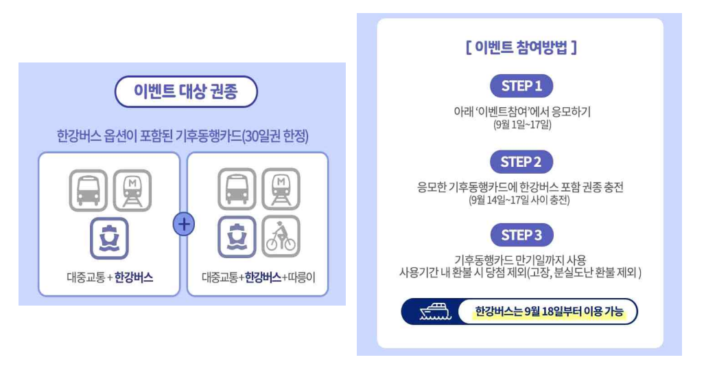 2025년 9월 18일부터 정식 개통되는 한강버스도 기후동행카드로 이용할 수 있습니다.