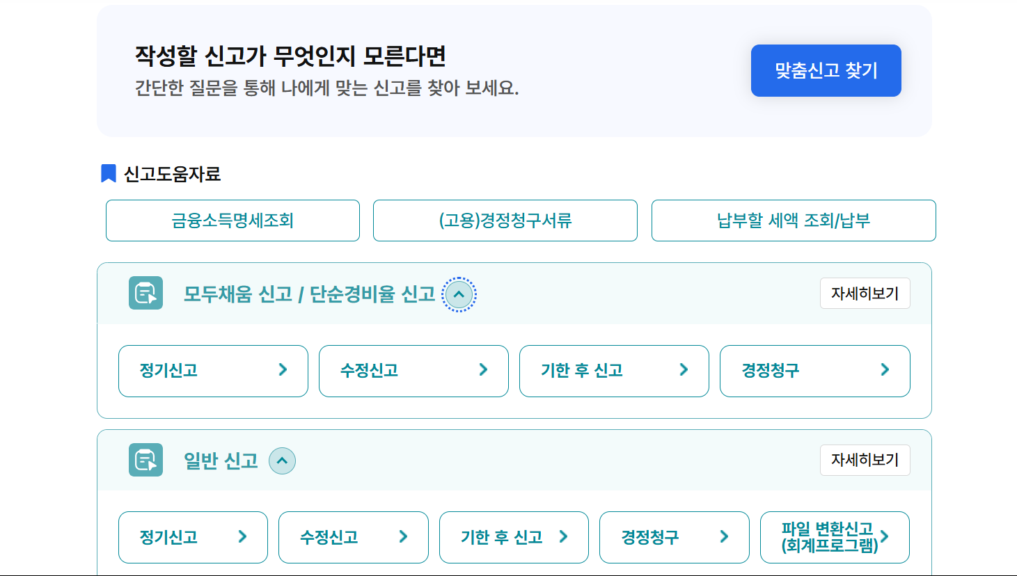 - ‘모두채움 신고’ 또는 ‘일반신고 선택